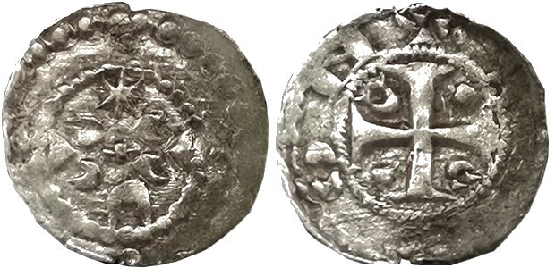 Avers : Dans un double grènetis, quatre annelets. Dans le grènetis intérieur