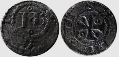 Avers : Dans un double grènetis, quatre C. Dans le grènetis intérieur un ME