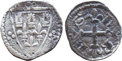 Avers : Dans un double grènetis, écu aux trois fleurs de lis, brisé d'un lambel.